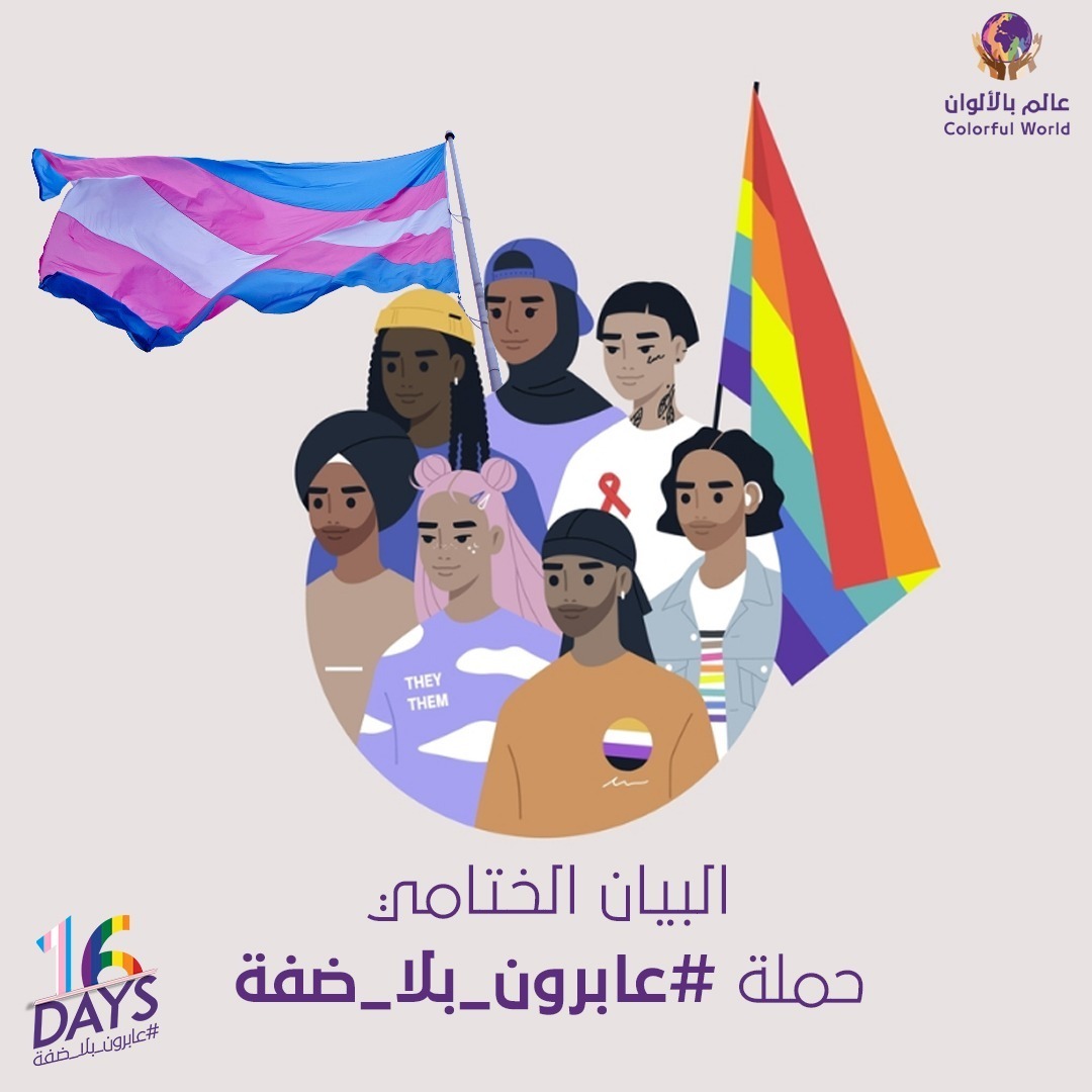 تختتم مبادرة عالم بالألوان ” حملة عابرون بلا ضفة ” و التي أطلقتها خلال حملة 16 يوم لمناهضة العنف المبني على النوع الاجتماعي والتي تحتفل… اقرأ المزيد »البيان الختامي لحملة الـ16 يومًا لمناهضة العنف الاجتماعي